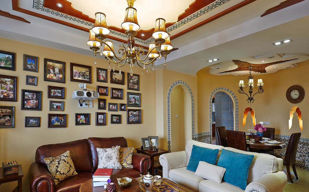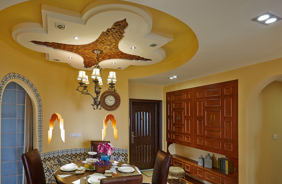 人們把摩洛哥這個稱為“北非花園”。具有異域風情的摩洛哥風格,裝飾華麗是它的特色。這個空間則以精致雕刻的線條,色彩活潑的瓷磚,創意獨特的吊頂,夢幻般神秘的臥室,令其充滿異國情調,又充斥著溫馨的氣息,它用自己獨有的顏色來表達對生活的熱情和歲月的沉淀。