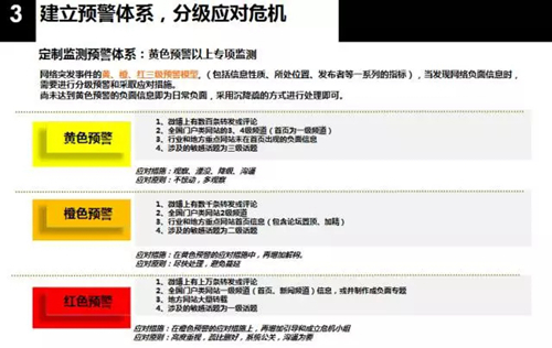 劉蕾認(rèn)為,酒店要從根本上提升風(fēng)險(xiǎn)防控能力,把危機(jī)隱患扼殺在萌芽狀態(tài),而不是后續(xù)應(yīng)對(duì)。可將輿情風(fēng)險(xiǎn)評(píng)估納入日常風(fēng)險(xiǎn)評(píng)估中;實(shí)行輿情風(fēng)險(xiǎn)通知單制度;全面總結(jié)酒店業(yè)輿情風(fēng)險(xiǎn)類(lèi)型;重要決策、項(xiàng)目、活動(dòng)前開(kāi)展風(fēng)險(xiǎn)評(píng)估等。“酒店業(yè)的很多重大投訴都發(fā)生在夜晚、凌晨時(shí)分,酒店平時(shí)就要培訓(xùn)、訓(xùn)練員工監(jiān)測(cè)應(yīng)對(duì)輿情,建立黃色、橙色、紅色預(yù)警分級(jí)管理體系,科學(xué)分析研判,分級(jí)應(yīng)對(duì),把輿情管理工作常態(tài)化。